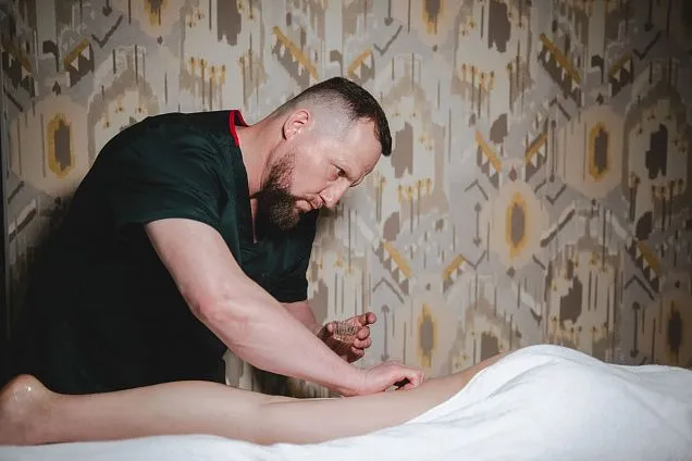 Массаж выполняется ручным методом. Плавными, волнообразными движениями, мастер воздействует на тело по направлению течения лимфы, что позволяет устранить спазмы сосудов. При необходимости, осуществляется точечная проработка лимфоузлов.